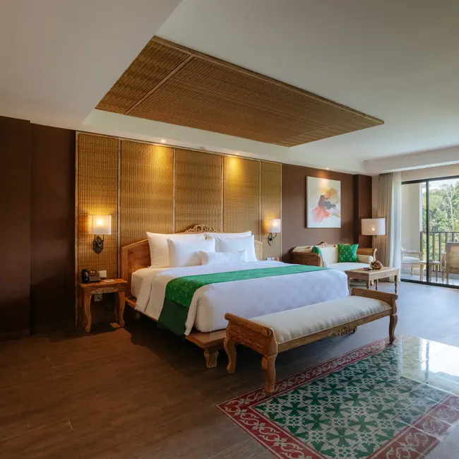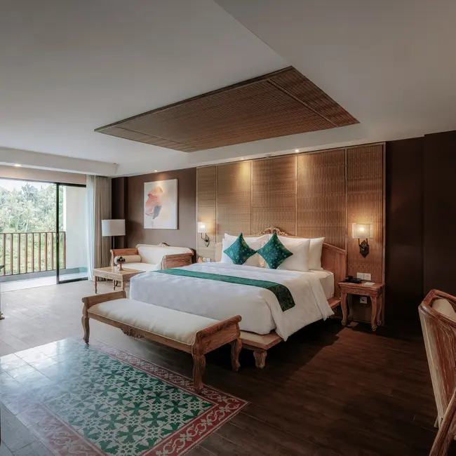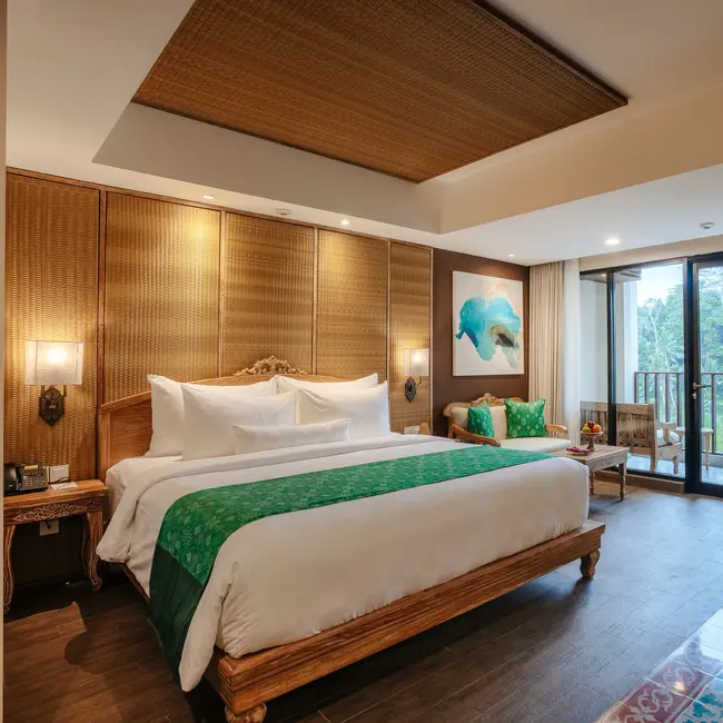 Designed with Balinese aesthetics in mind, the Venya Suite showcases tailored furnishing and lighting, with exquisite hand-carved wooden details. With the aim to give a convenient stay for the guests, the suite comes with a flat-screen television with adjustable placement so that it can be viewed from the living area or the bedroom. An opulent and spacious en-suite bathroom completes the experience with an expansive bathtub, rain shower and double marble vanity.