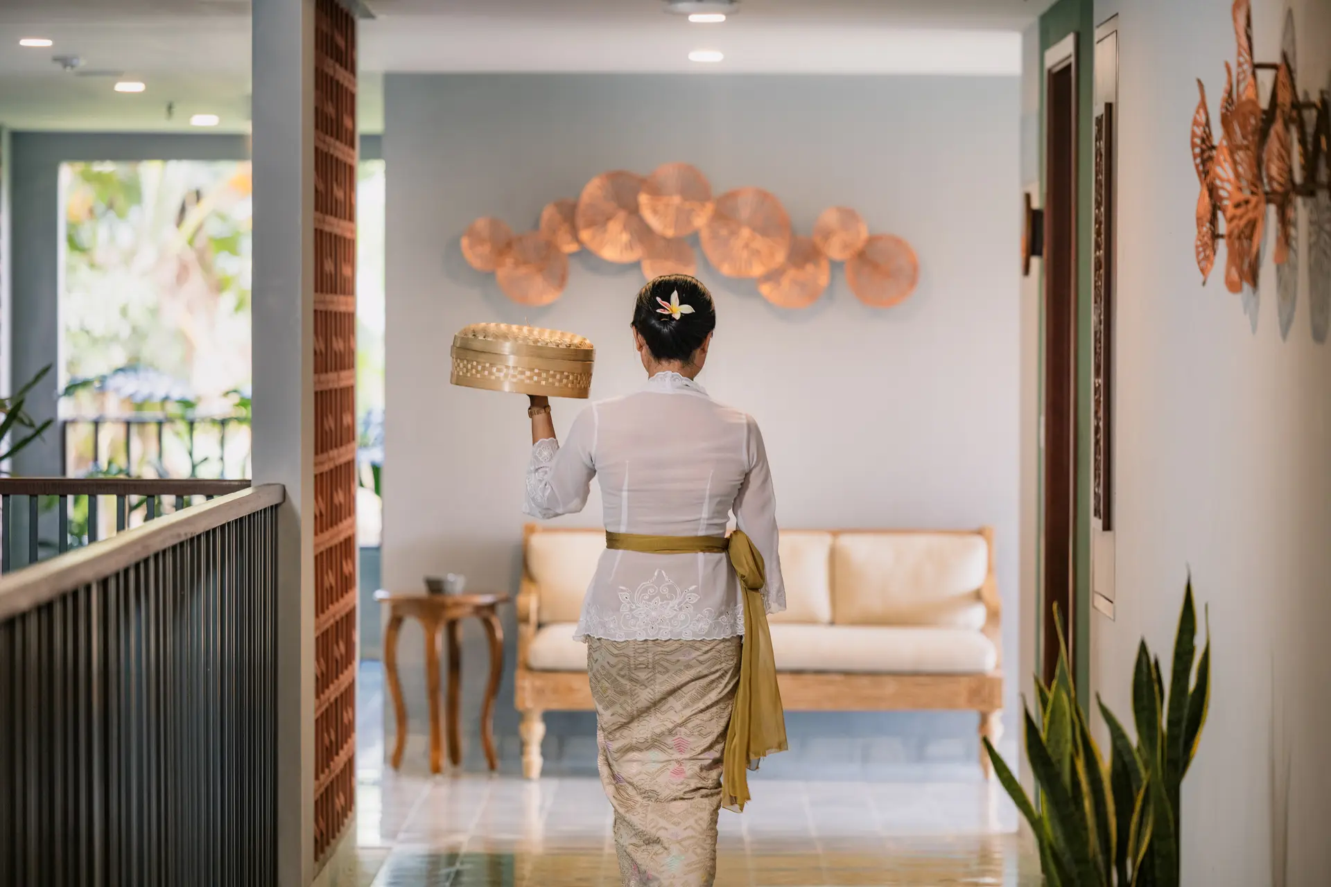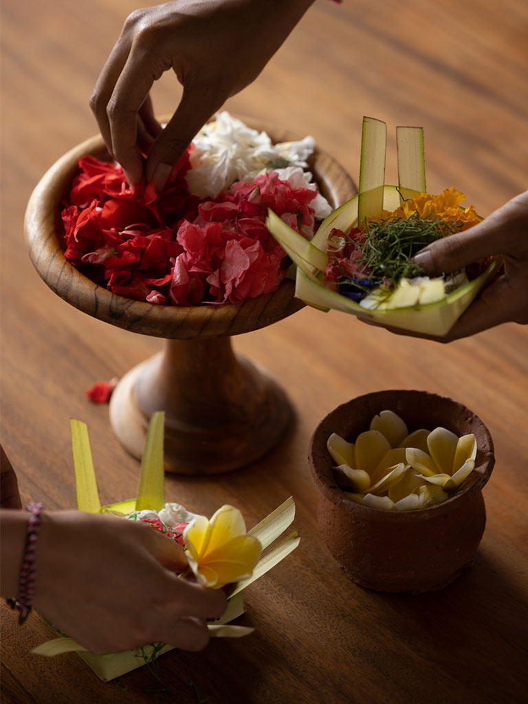 Making canang is a traditional Balinese practice involving crafting small, intricate offerings for religious purposes. These offerings typically consist of a square tray made from banana leaves, filled with flowers, betel nut leaves, and other symbolic items. The process involves arranging these components in a specific order and pattern, often accompanied by prayers and rituals to honor Hindu deities. The act of creating canang is considered a sacred and meditative practice, embodying principles of gratitude, respect, and devotion in Balinese culture Balinese blessings are sacred rituals performed to invoke divine protection, harmony, and prosperity. They are rooted in Hindu traditions and involve prayers, offerings, and ceremonial gestures conducted by a priest or spiritual leader. These blessings are believed to bestow spiritual grace and positive energy upon individuals, families, or communities, promoting well- being and warding off negative influences. Balinese blessings are integral to daily life and important events such as weddings, births, and temple ceremonies, reinforcing the cultural and spiritual heritage of the Balinese people. Lorem ipsum dolor sit amet, consectetur adipiscing elit, sed do eiusmod tempor incididunt ut labore et dolore magna aliqua. Lorem ipsum dolor sit amet, consectetur adipiscing elit, sed do eiusmod tempor incididunt ut labore et dolore magna aliqua. Lorem ipsum dolor sit amet, consectetur adipiscing elit, sed do eiusmod tempor incididunt ut labore et dolore magna aliqua.